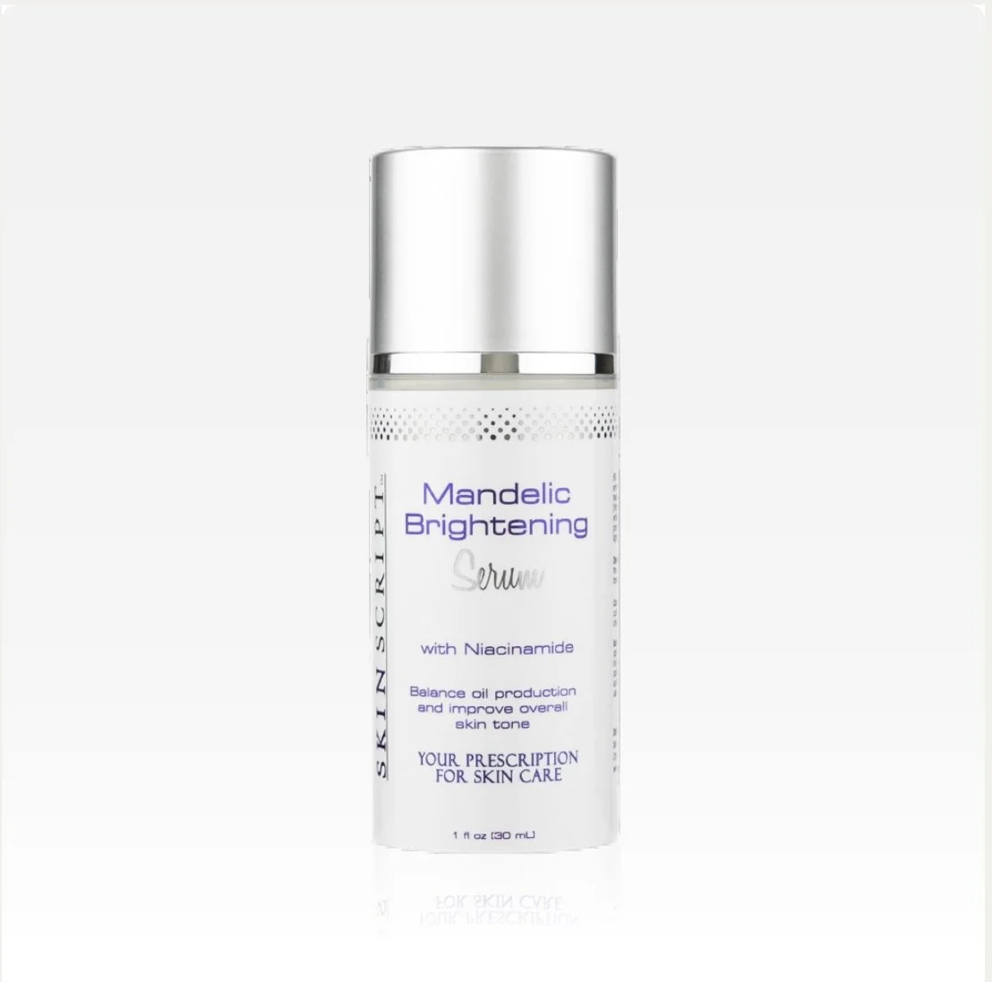 Mandelic Brightening Serum helps to reduce pigmentation, exfoliates, and helps reduce pores’ appearance. This dynamic serum contains BioFense and Dendriclear™ to support the skin’s microbiome, reduce sensitivity, and enhance barrier function. Niacinamide provides anti-inflammatory-like support as well as increases cellular energy. Azeloglicina® normalizes sebum and brightens the skin for a more balanced complexion.